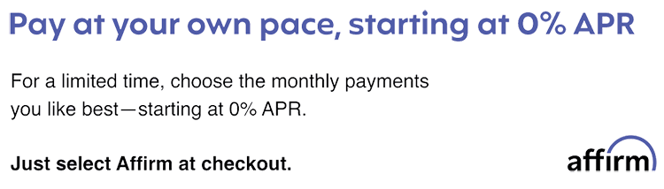 BONUS: For a limited time qualified buyers can get 0% APR for 6 months when selecting to pay via Affirm.